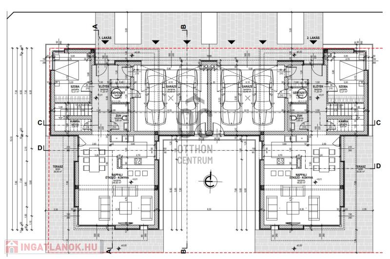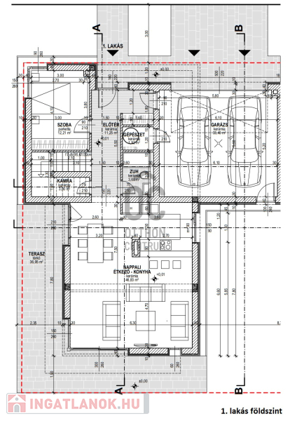 A garázs két gépjármű parkolására alkalmas.