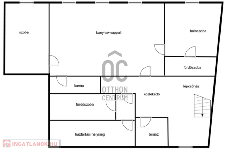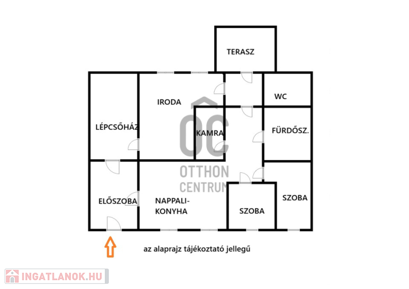 - földszint cc 100nm-s : nappali-konyha, 2 hálószoba , kamra, fürdőszoba, és egy külön iroda helyiség mosdóval , található