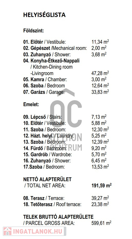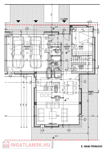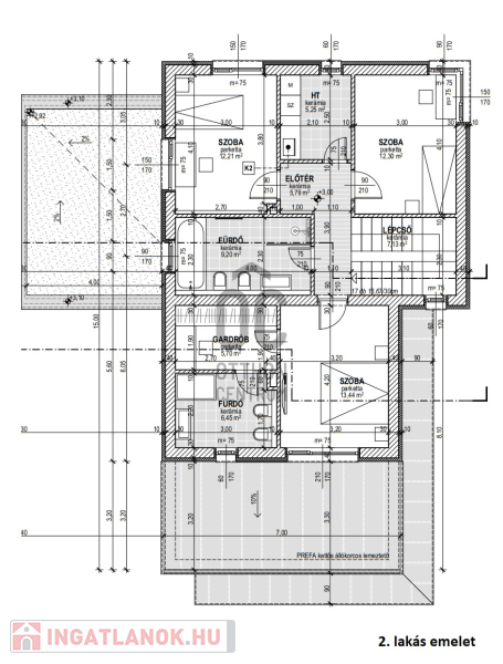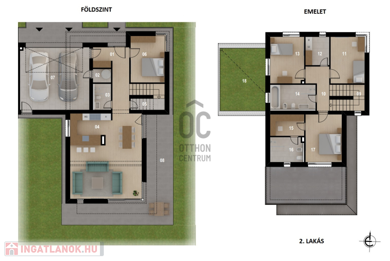 Az ikerházak 2.lakása: 190nm alapterületű, nappali + 4 szobás, 600 nm-es telekrésszel.