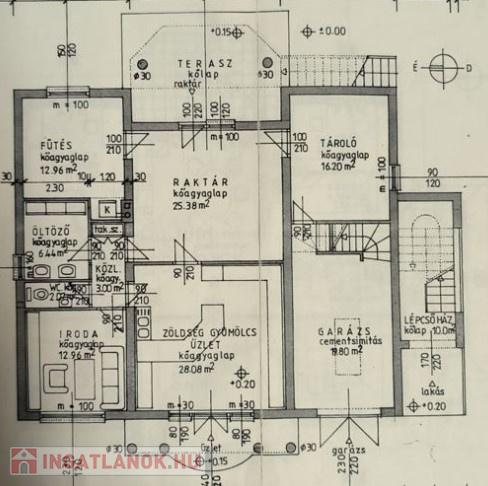 Az irodáknak kialakítható lakótérben 4 szoba+ amerikai konyhás nappali+ kamra+ fürdőszoba, w.c található. Elrendezése praktikus, tágas helyiségek, szobái külön nyílóak. Fűtése gázcirkó, padló és radiátor hőleadókkal. A villany és vízhálózat a mai elvárásoknak megfelelő, 3 fázis bevezetve. Az alsó szint átalakítás nélkül is kiválóan alkalmas kereskedelmi célokra, amely hátsó kijárással is rendelkezik a raktárépület felé. Önálló közmű órákkal rendelkeznek.