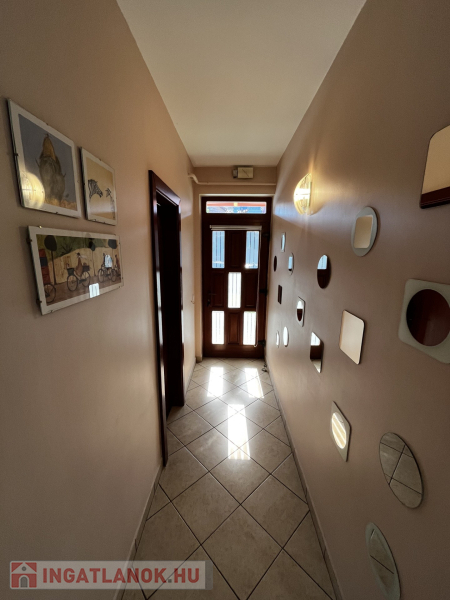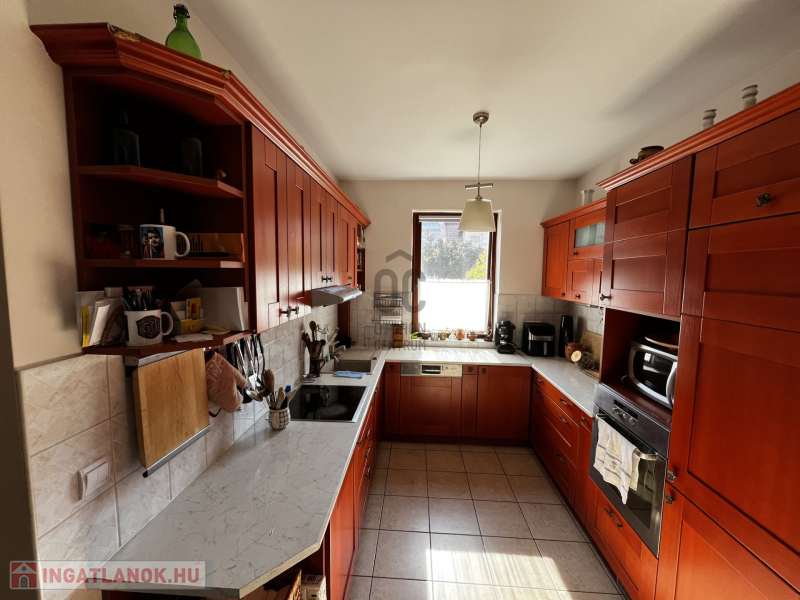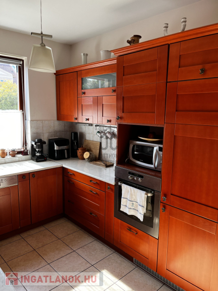 Eladó a Liget Lakópark legkedveltebb részén 460 m2 telken épült 195 m2 öt szobás zártsorú beépítésű családi ház.