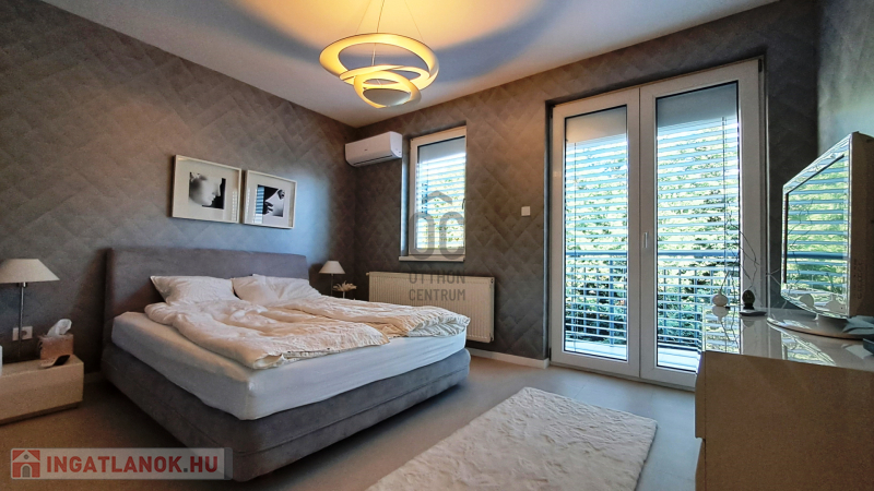 Széchenyi kertben Nappali + 3 szobás, 130 nm-es, gardróbos, nagy, esztétikus kialakított terasszal és garázskapcolattal rendelkező erkélyes, stílusos, 2011-es építésű, különleges hangulatú sorházi ingatlan eladó