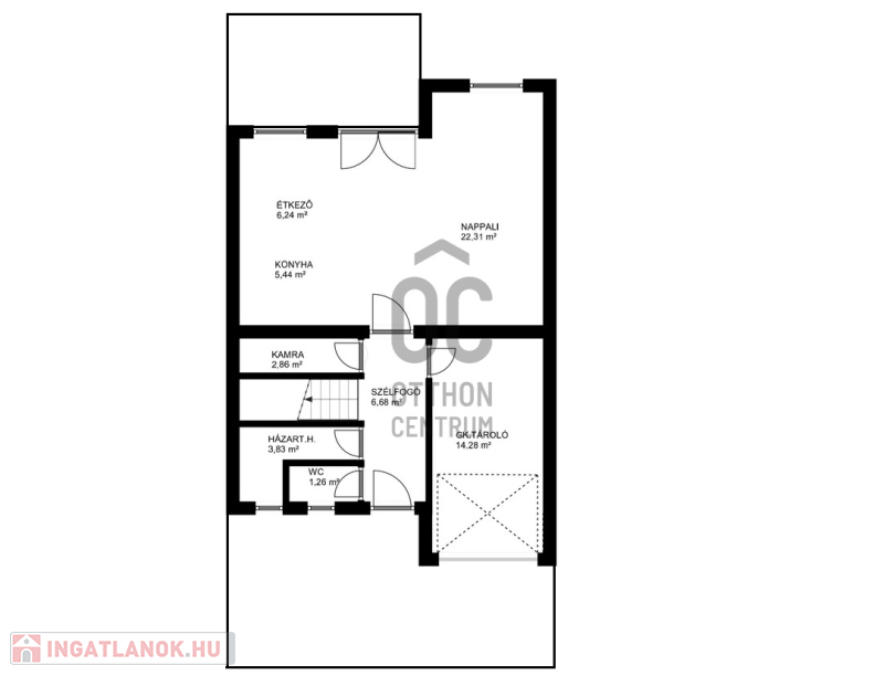-földszinten tágas nappali-konyha-étkező