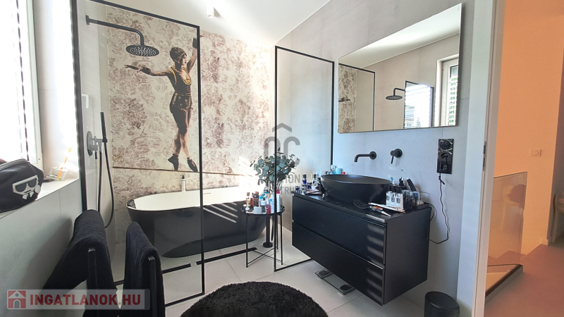 - tágas, formatervezett, nívós anyagokból megvalósított fürdőszoba