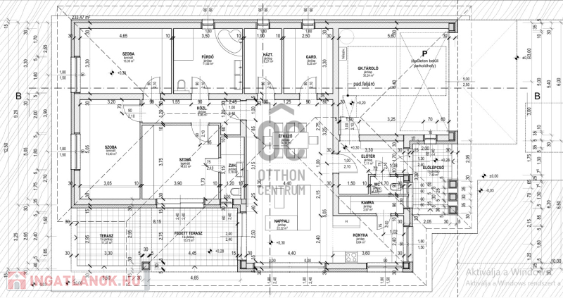 - helyiségei: 45 nm-s terasszal kapcsolatos tágas, világos konyha-étkező -nappali, 3 hálószoba (melyek 15 nm-ek), 2 fürdő szoba, háztartási helyiség, gardrob, kamra, garázs