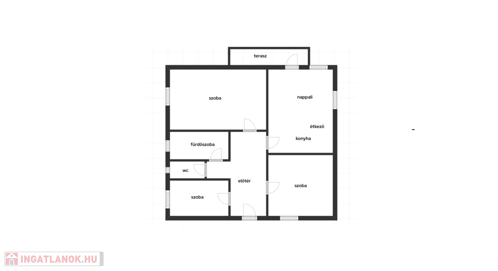 -tágas, 30 m²-es nappali-étkező-konyha közvetlen teraszkapcsolattal