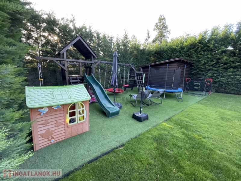 Értékesítésre kínálunk Debrecen kertvárosi övezetében egy gyönyörű, 2013-ban épült emeletes családi házat. Az ingatlan egy 875 m2 területű telekre épült, és büszkélkedhet egy 320 m2-es alapterülettel. Az otthon kényelmét egy tágas nappali + 7 szoba biztosítja, melynek mindegyike elegánsan kialakított és modern dizájnnal rendelkezik.