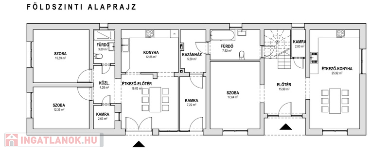 •Két Külön Lakrész: A ház két, teljesen szeparált lakrésszel rendelkezik, melyek mindegyike külön bejárattal közelíthetõ meg. Ez garantálja a privát szférát és a kényelmet minden lakó számára, miközben a családi összetartozás érzése is megmarad.