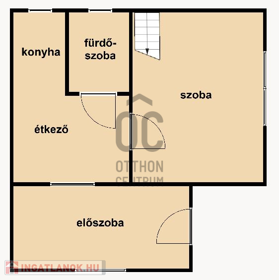 - földszinten szoba + fürdőszoba + konyha-étkező