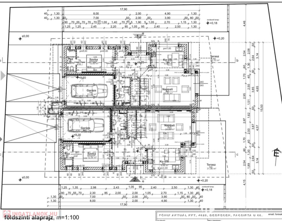 A garázs 21 m² -es, , illetve további 2 autó számára, autóbeállás biztosított.