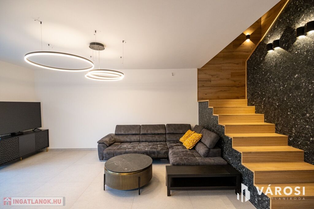 Ez a gyönyörű, 212 m²-es lakótérrel rendelkező ingatlan 420 m²-es telken fekszik, és kiváló állapotban várja új tulajdonosát. Az ikerház belső szintes kialakítású, amely praktikus és modern életteret biztosít.