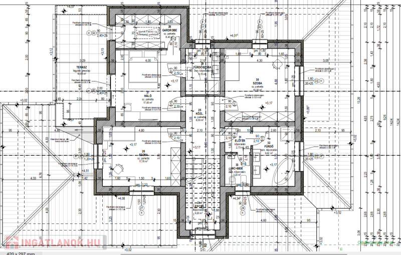 - Földszint : 183,69 m2 + 20,33 m2 fedett terasz