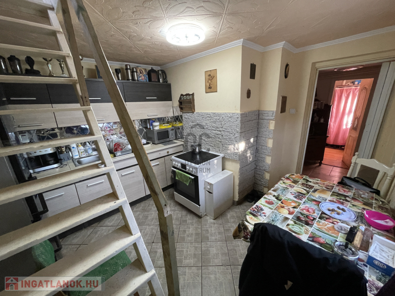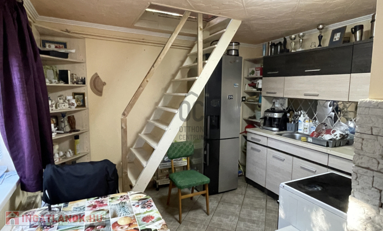 A földszinten található egy szoba, fürdőszoba-wc, előszoba, konyha-étkező, az emeleten pedig egy tetőtéri szoba.