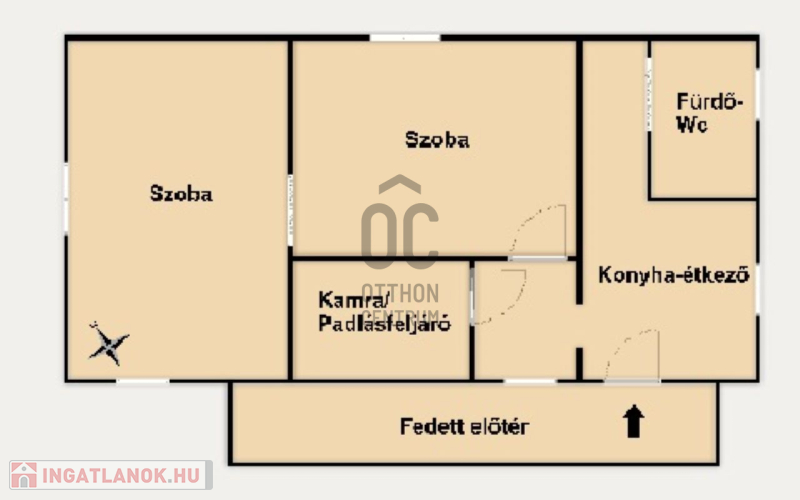 - helyiségei: konyha-étkező, kamra, fürdőszoba-wc, 2 szoba, közlekedő