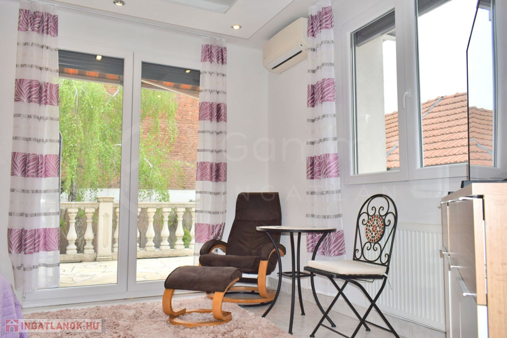 Debrecen Óváros részén eladó egy 4 szobás eltolt szintes sorház, amely szuterénnel, földszinttel és tetőtér beépítéssel rendelkezik. Az ingatlan zöldövezeti lakókörnyezetben található. A modern homlokzat esztétikus megjelenést biztosít az épületnek.
