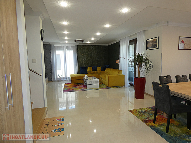 A garázsban akár négy autó is elfér, így a parkolási gondokról sem kell aggódnod. Az ingatlan állapota kiváló, a minimalista kialakításnak köszönhetően pedig modern és világos. A tágas nappaliban LED hangulatvilágítás teszi hangulatossá az esti órákat, az amerikai konyha pedig lehetővé teszi, hogy az egész család együtt élvezze az étkezéseket. Az ingatlanban beépített bútorok és szekrények találhatóak, így nem kell aggódnod az elhelyezés miatt. Az ingatlanban 4 hálószoba és 2 fürdőszoba található, így akár nagyobb családoknak is kényelmes otthon lehet. A terasz és az erkély mérete is ideális, hogy a szabadban is élvezhesd az időtöltést. Az automata öntözőrendszer és a rendezett kert gondoskodik arról, hogy mindig szép és ápolt legyen a környezet. A biztonsági ajtó és a riasztórendszer pedig garantálja a családod biztonságát. Az ingatlan környéke csendes és biztonságos, így a gyerekek is nyugodtan játszhatnak a kertben.