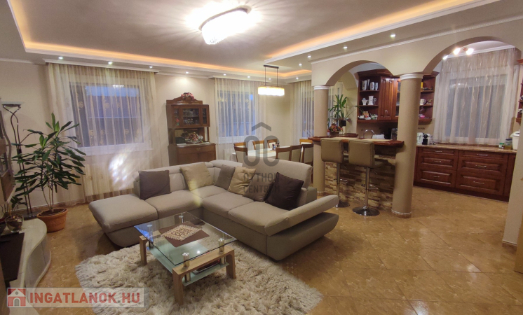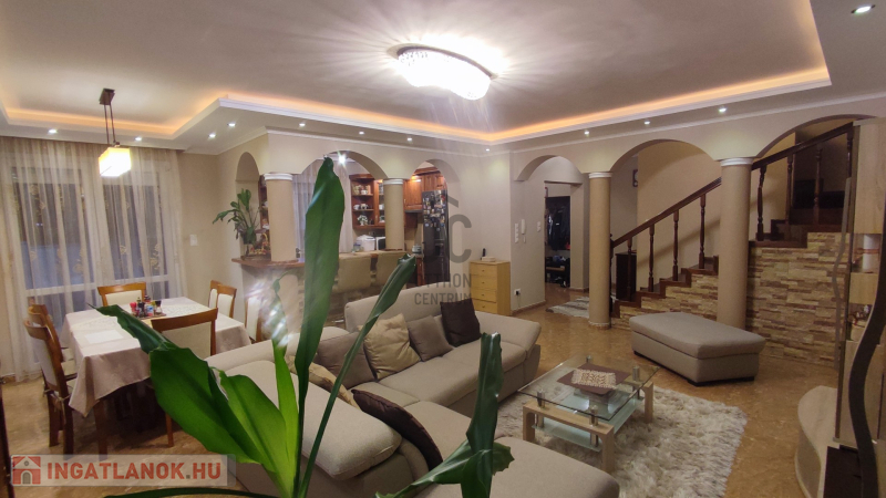 Az ingatlanban öt tágas szoba található, amelyek közül a nappali különösen figyelemre méltó, hiszen világos, napfényes terével, valamint LED hangulatvilágítással várja új lakóit. A három fürdőszoba kényelmet és praktikus megoldásokat kínál, így a család minden tagja számára elegendő hely áll rendelkezésre. A ház fűtése klímával, valamint gáz cirkó rendszerrel működik radiátoros hőleadókkal és a járólapos helyiségekben padlófűtéssel. A nyári forróságban szintenként elhelyezett a klímaberendezés biztosítja a kellemes hőmérsékletet. A családi házba többrétegű műanyag nyílászárók kerültek beépítésre redőnnyel és rovarhálóval felszerelten. A konyhába magas minőségű gépesített konyhabútor található. Az ingatlanra 2023.évben 3 kW-os napelem rendszer került telepítésre szaldós elszámolással, mely az egész ház energiaigényét fedezi. Az elektromos kapu kaputelefonnal működtethető, a bejárati kapu is elektromos működésű.