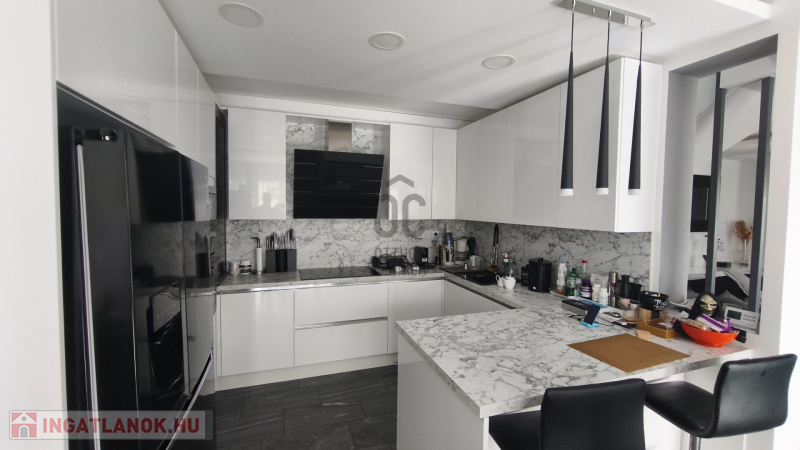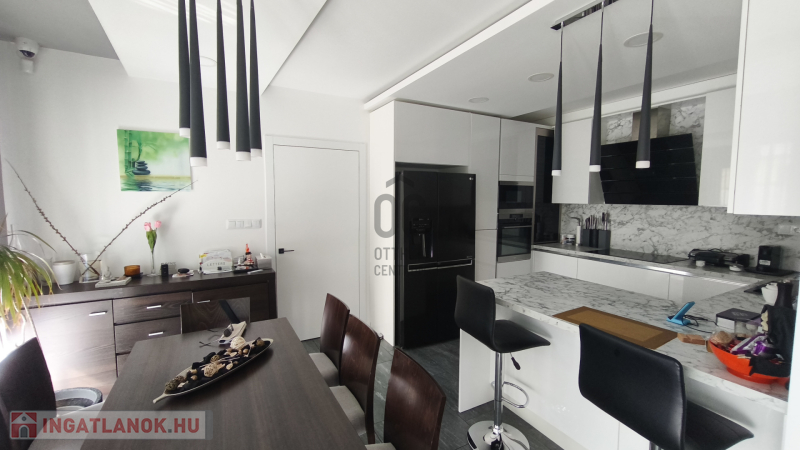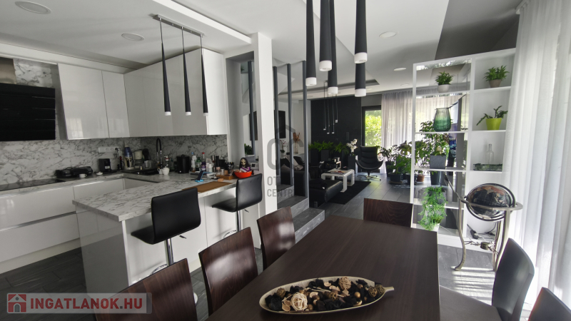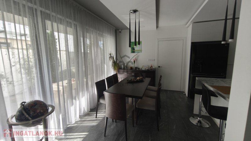 Debrecen elit lakóparkjában , a Liget II - ben eladó, egy 380 m2 - es önálló telken épített, 201 m2 hasznos alpterületű lakás , amelyből 36 m2 a duplagarázs.