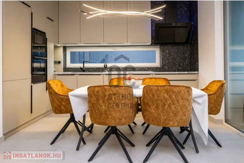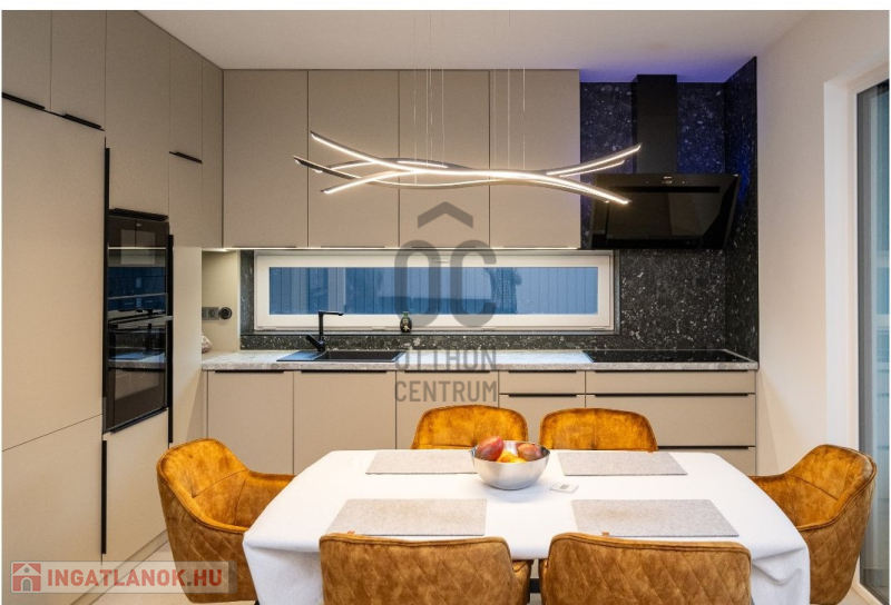Debrecen csendes, barátságos, kertvárosias városrészében, a Vezér-lakótelepen található ez a prémium kivitelezésű, modern ház, amely ideális választás családosok számára. A 212 négyzetméteres alapterület és a 420 négyzetméteres telek tökéletes teret biztosít a kényelmes élethez. A házban összesen 6 szoba található, így bőven van hely a család minden tagjának, valamint a vendégek fogadására is. A három fürdőszoba pedig garantálja, hogy soha ne kelljen sorban állni a reggeli készülődés során. Az ingatlan kiváló állapotban van, így azonnal költözhető. A hőszivattyús fűtés és a mennyezethűtés biztosítja, hogy a hőmérséklet mindig kellemes legyen, függetlenül az évszaktól. Az erkélyek, melyek összesen 17 négyzetméter nagyságú, tökéletes helyszín a reggeli kávézáshoz vagy a naplementék élvezetéhez. A panorámás kilátás pedig csak tovább fokozza az otthon varázsát. A belső burkolatok, beltéri ajtók, szaniterek a vételár részét képezik. A környék csendes és biztonságos, ideális helyszín a családi élethez. A közeli közlekedési lehetőségek könnyedén elérhetőek, így a város többi része is gyorsan megközelíthető. A városrész zöldövezete és a közeli park remek lehetőséget kínálnak a szabadtéri programokra, sétákra, valamint a gyerekek szabadidős tevékenységeire. A környéken található boltok, iskolák és óvodák pedig mind hozzájárulnak ahhoz, hogy az itt élők kényelmesen és boldogan élhessenek.