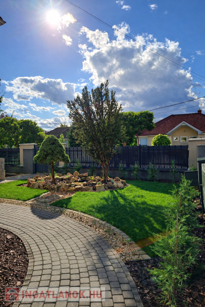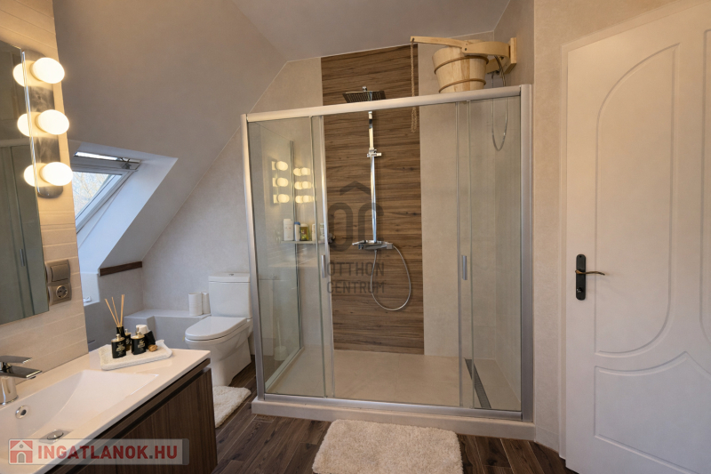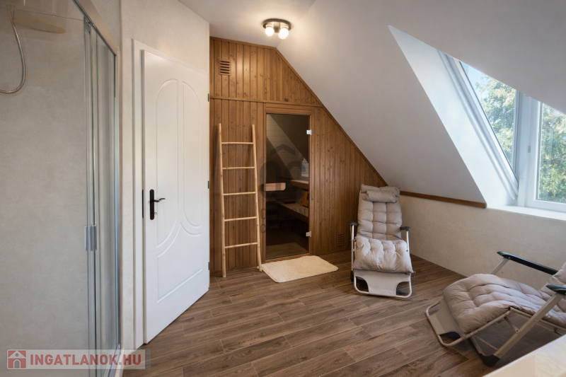 A ház különleges hangulata – a nagy belmagasságú nappali, a kandalló, a szauna és a tágas kert – egy olyan életstílust kínál, amely tökéletes választás azok számára, akik otthonukban szeretnének kikapcsolódni, vendégeket fogadni vagy családi és baráti összejöveteleket tartani.