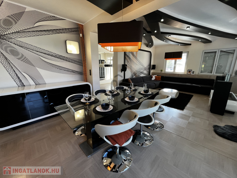 Eladó Debrecen luxus kertvárosi övezetében kétszintes, nappali plusz öt hálószobás családi ház.