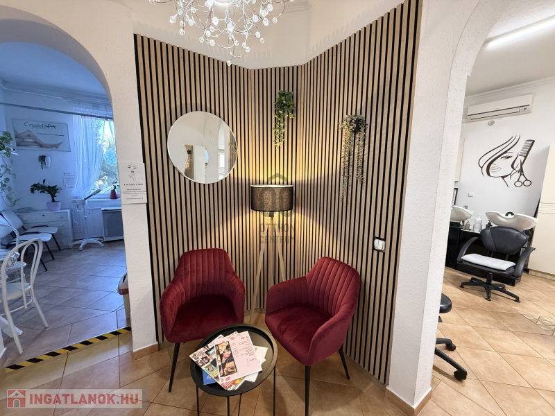 •Az épület egyik részében 120 m²-es, működő szépségszalon található