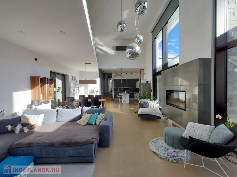 Értékesítésre kínálunk Debrecen- Homokkert csendes utcájában egy igényesen tervezett MODERN stílusú, dupla komfortos, nappali+ 4 szobás, LUXUS önálló családi házat, melynek nettó alapterülete 290 m2.