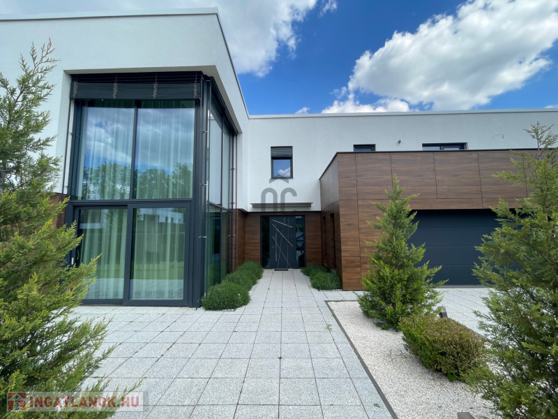 Az 550 m²-es, intim, elkerített telken elhelyezkedő luxusotthon egyszerre képviseli a modern dizájn letisztult világát és a kifinomult ízlés legmagasabb szintjét.