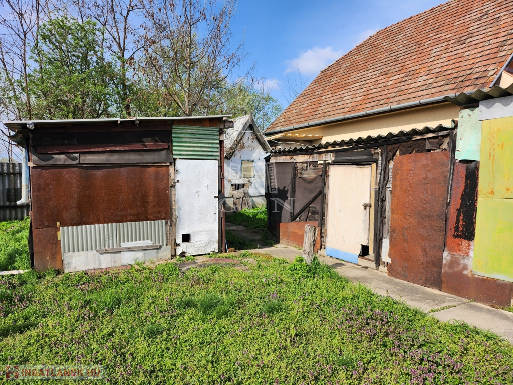 A házzal egybeépítve egy 18nm-es nyári konyha van. Az udvaron egy külön álló 16 nm fából készített fedett szerelő aknás garázs található. A telken van még egy fából készített lomos/tároló illetve a telek végén egy kis vályog épület.