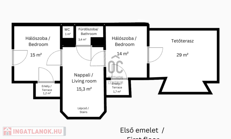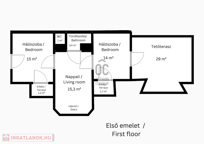 - Mindkét hálószoba saját kis erkéllyel rendelkezik
