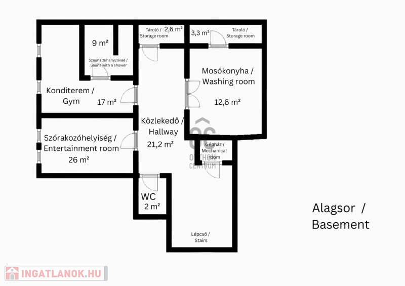 1) Szuterén – A privát szórakoztató és wellness szint: