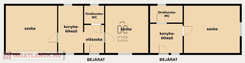 - A második egységben kettő szoba, fürdőszoba-WC, konyha-étkező, előszoba helyezkedik el.