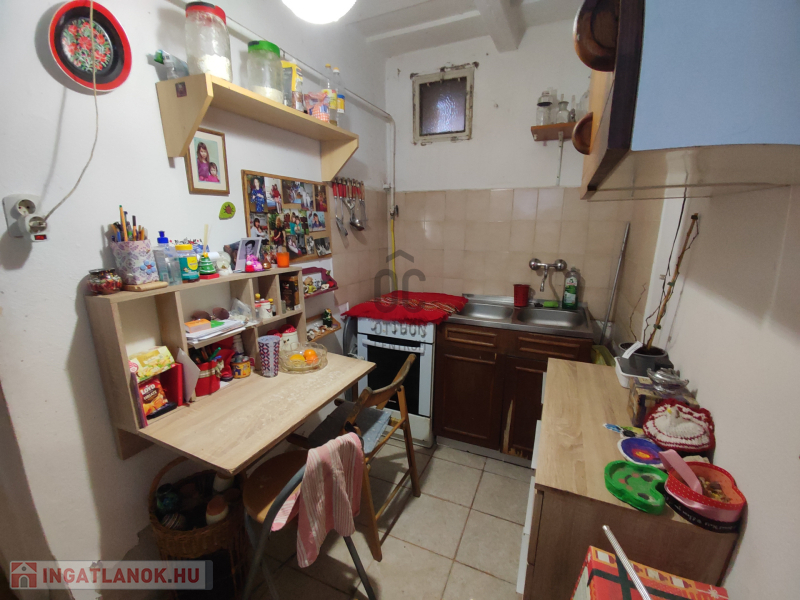 - Az első, utcafronti részben szoba, fürdőszoba, konyha-étkező található