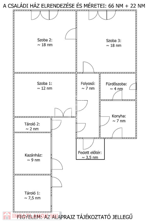 A családi ház hasznos nettó alapterülete 66 nm, melyben található: