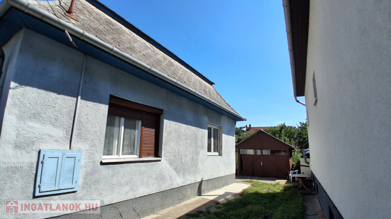 A 750 négyzetméteres telken lévő ház csendes utcában található.