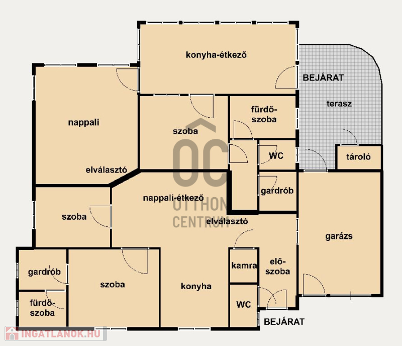 - különálló kettő lakrész, külön bejárattal