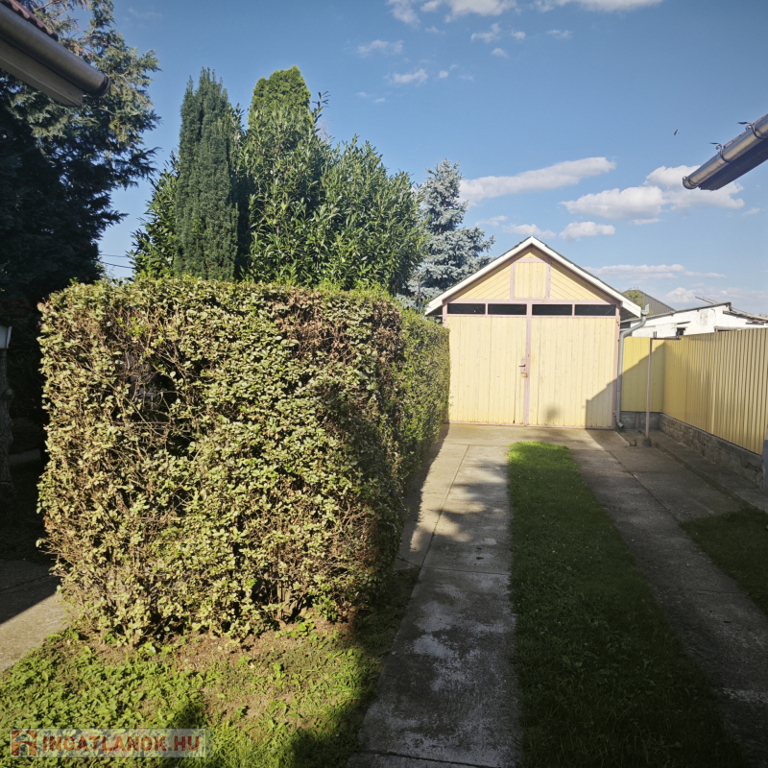 Udvar : szépen parkosított, tele van ültetve fákkal, sövényekkel, illetve itt került kialakításra egy pincével rendelkező tároló, és a garázs.