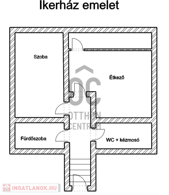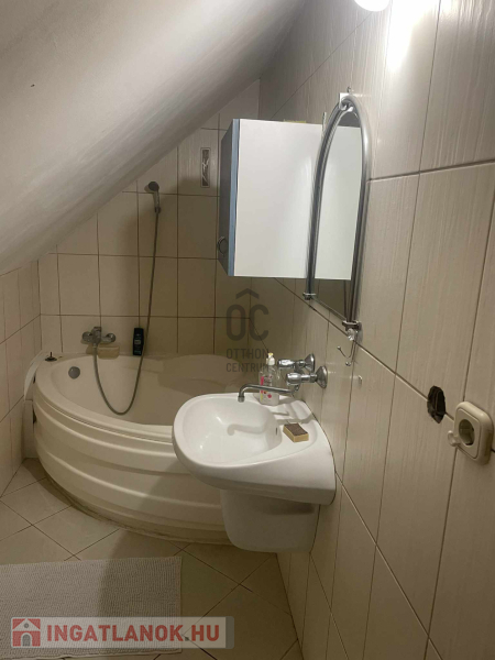 Az ikerház emeletén lévő lakrész nettó 40 m2, beépített tetőtér:
