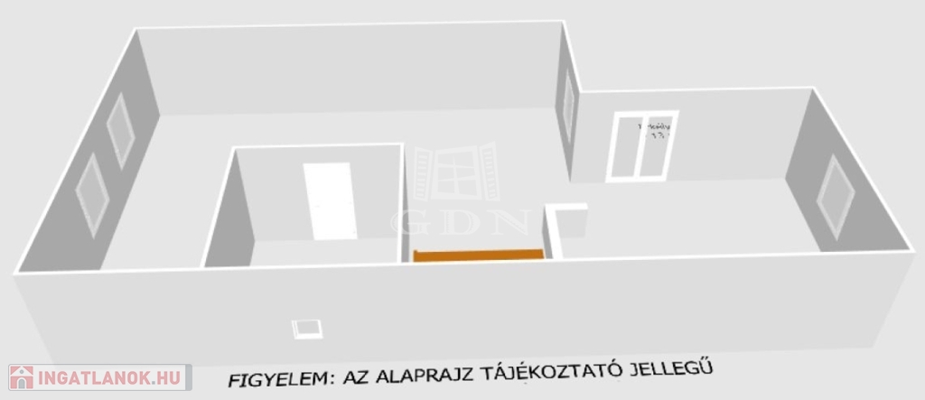 A főépület (földszint) alapterülete 87nm, melyben található: