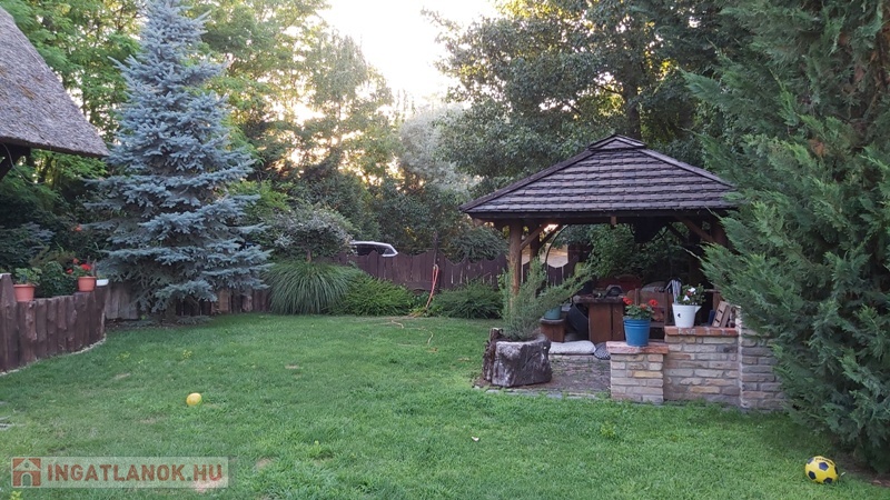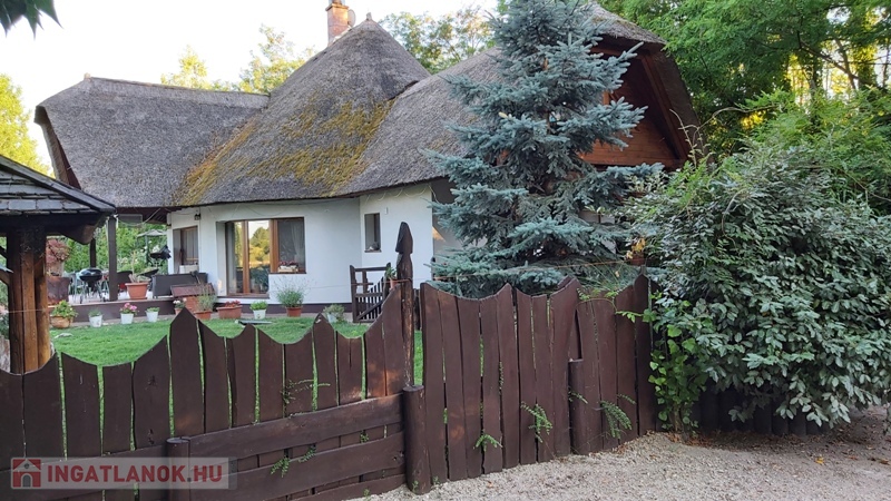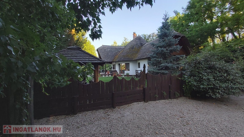 Délegyházán Robinson Öko faluban , közvetlen tó parti 2 szintes 195 nm lakóterű 4 szobás családi ház 4300 nm telekkel első tulajdonostól eladó. Épült:2010-ben, lakhatási engedélyt 2018-ban kapta az ingatlan. Beton alapon, beton födémes ovális alakú ház nád tetővel . Fa hatású műanyag thermo üveges nyílászárók.Elosztása:Földszinten:-előtér,konyha,nappali,kamra,fürdőszoba wc -vel, külön wc kézmosóval, 1 hálószoba. Emeleten: nappali, gardrob szoba, 2 nagy tóra néző hálószoba. Burkolatok:járólap, parketta. Nappaliból a víz felé 34 nm fedett terasz nyílik. Fűtés: elektromos kazánnal,radiátoros illetve a nappaliban épített kandallóval. Gáz,víz,csatorna nincs az utcában. Víz ellátás bevizsgált 24 méter mély kútról történik házi vízművel. Olyan jó a ház klímája,hogy nyáron csak mennyezeti ventillátort használnak, nem szükséges a klíma. Belmagasság: 2,8 m. Kertben kiépített autó behajtó saját kis erdővel, 2 autó részére fedett beálló, de magasságát tekintve kis busszal is be lehet állni. Fedett sütögető hely .Locsolás automata öntözőrendszerrel fúrt kútról. Riasztó, kamera rendszer. Magán út vezet a házhoz,sorompóval védett. Rezsi: villanyszámla,szemét díj,internet. Tehermentes! Érd:Mészáros Katalin 06309-561860