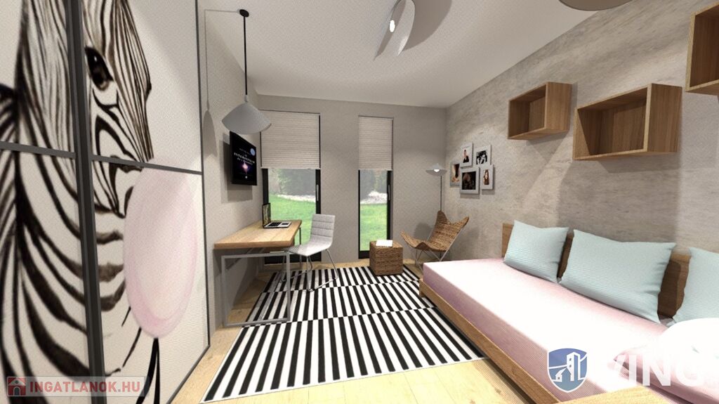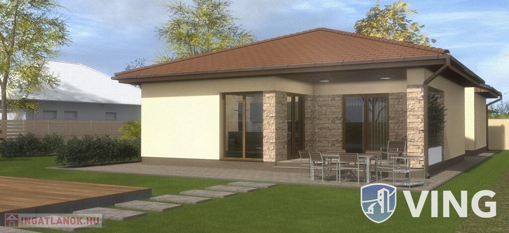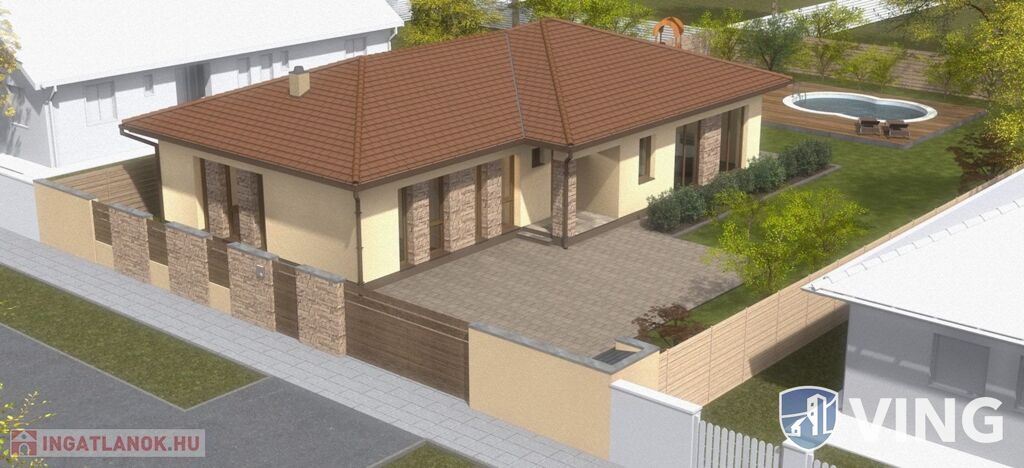A hirdetésben szereplő ház 120 m2 alapterületű, amerikai konyhás nappali + 4 hálószobás elrendezésű 2 fürdőszobával. Igénybe vehető rá minden fajta állami támogatás és CSOK+ hitel, illetve ÁFA visszaigénylés is!