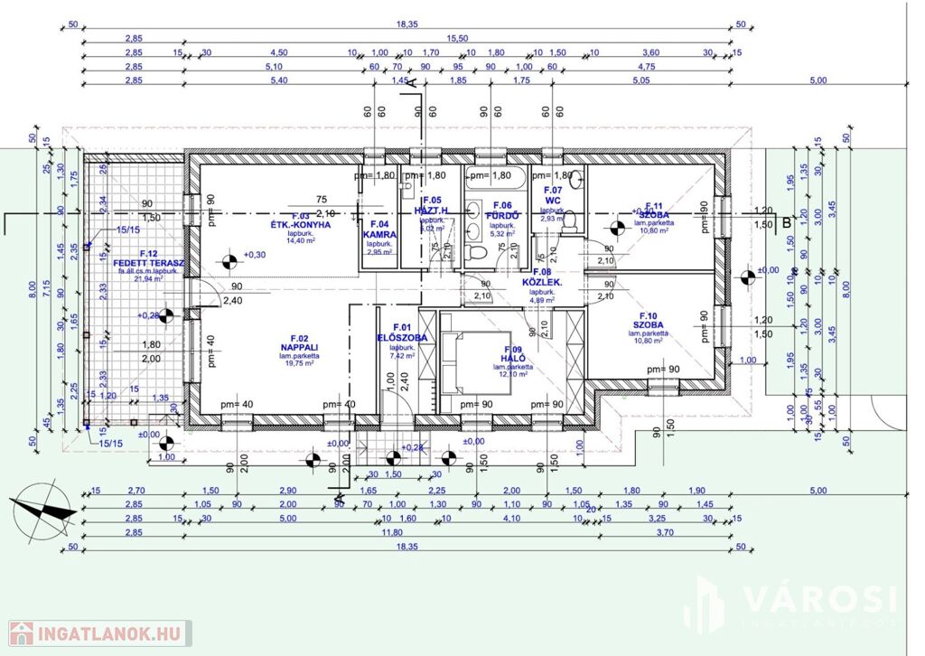 - Tetőszerkezet, födém: (záró) koszorúba kötött szeglemezes tetőszerkezet gomba, rovar és tűzkár ellen kezelve. Függesztett álmennyezettel, alsó burkolata glettelt 1 rtg gipszkarton burkolattal. Eresz lazúros gyalult lambériával burkolva.