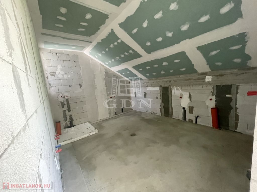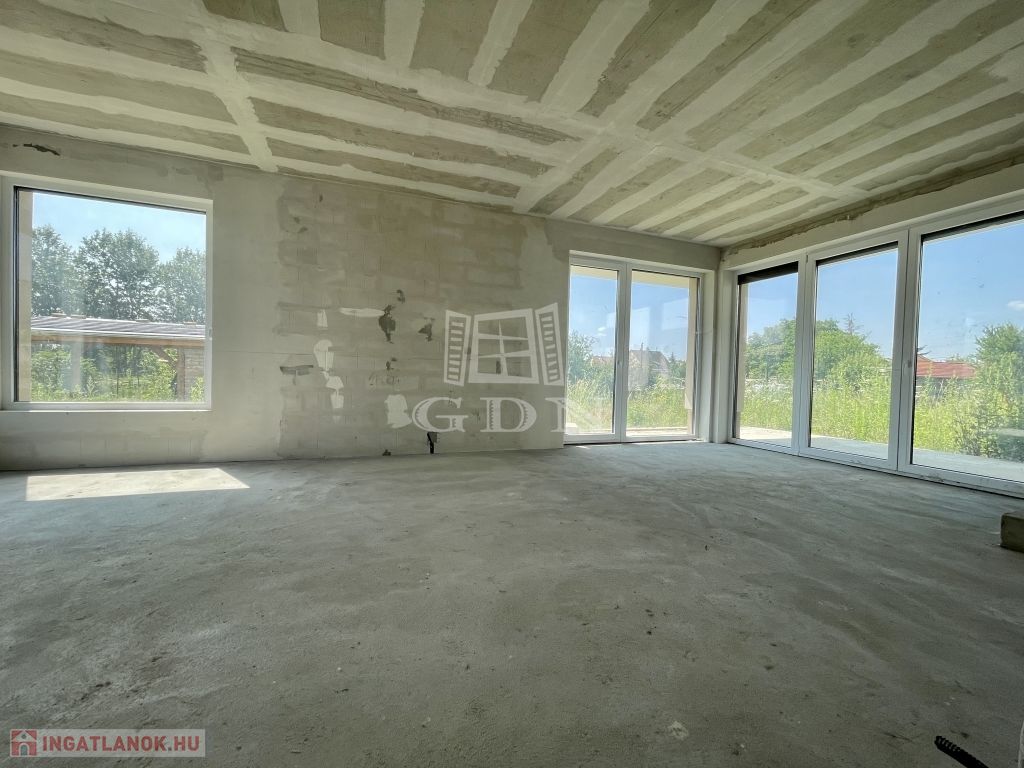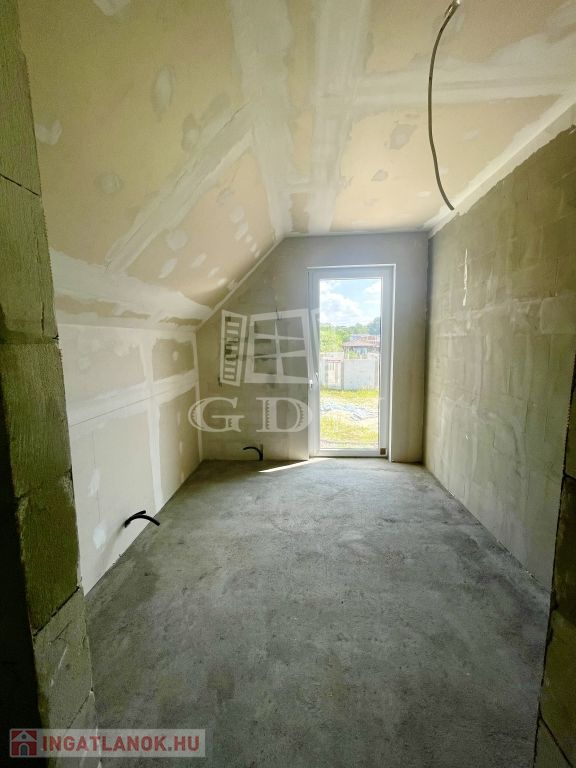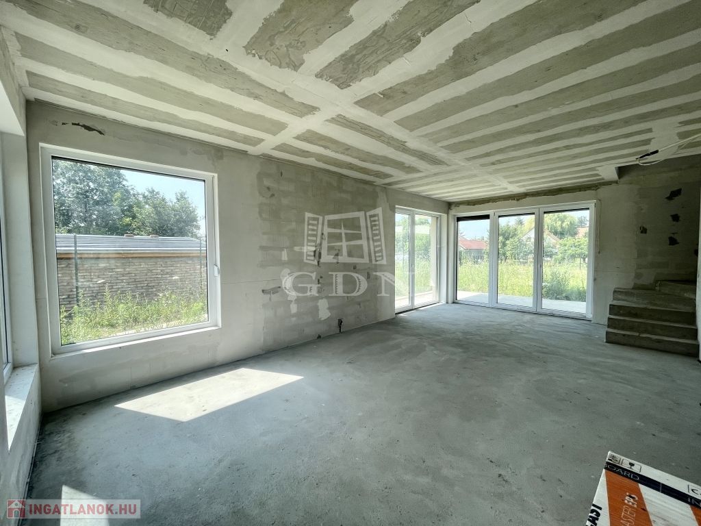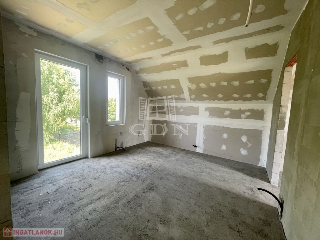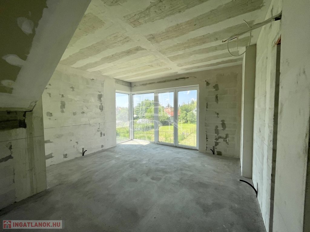 Tető alatt van, bent vannak a nyílászárók redőnnyel és szúnyoghálóval, A ház szigetelve és színezve van. A válaszfalak állnak, a fűtés és elektromos hálózat elő van készítve, be van csövezve.