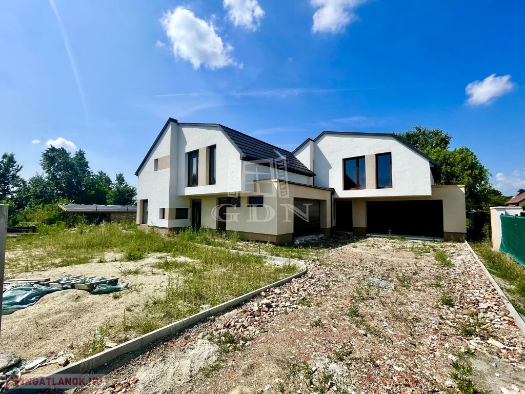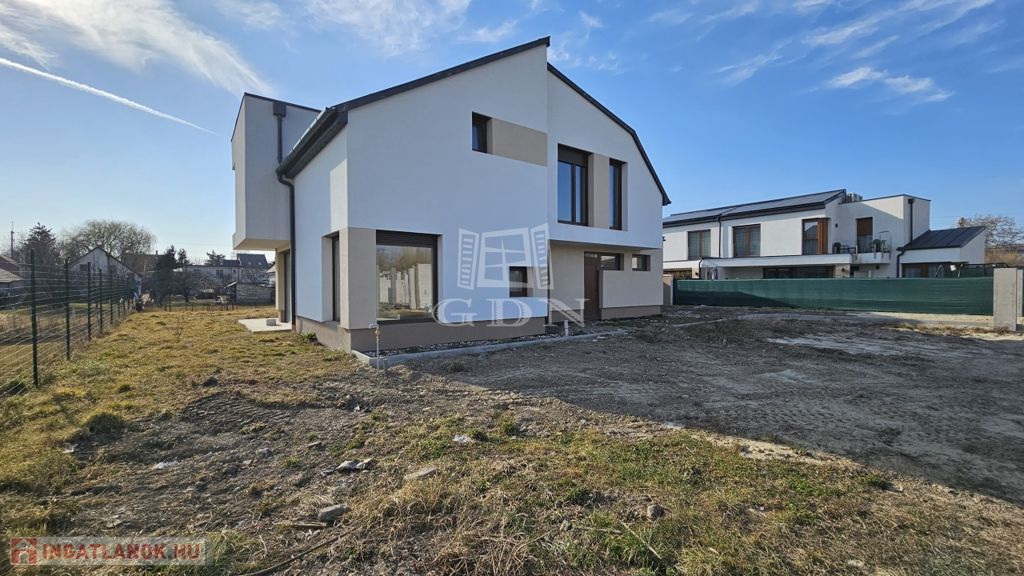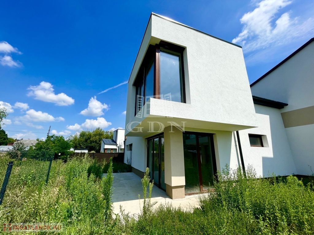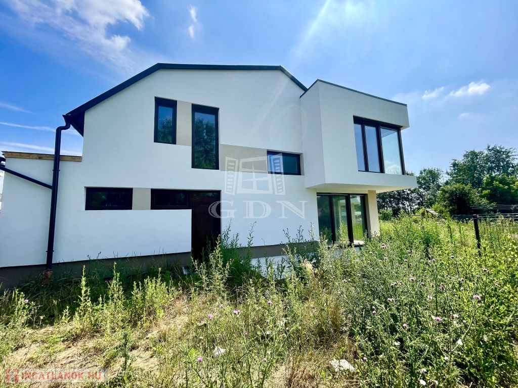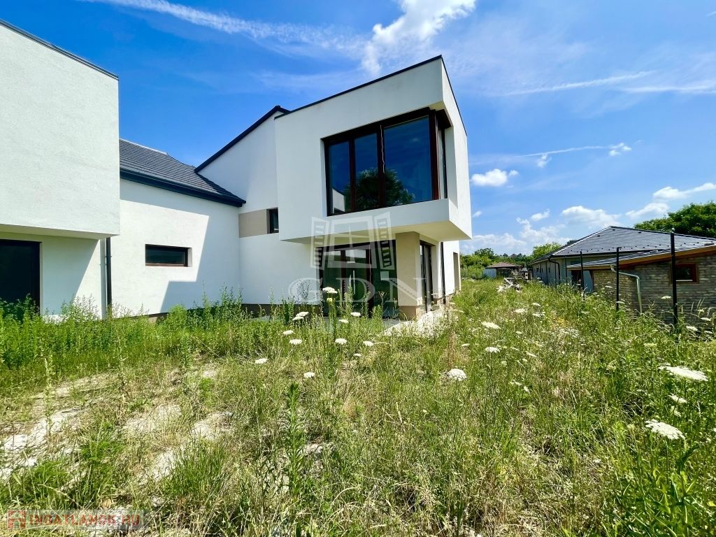 A MODERN, egyedi stílusú ház Diósd zöldövezetében, csendes utcában, újépítésű házak közt, magasfeszültségű oszlopoktól távol található.