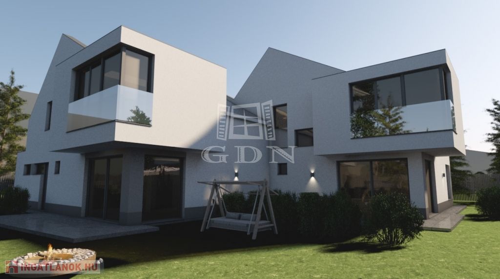 A kétszintes ház nettó 144 nm, 345 nm-es telekkel, ill van 185 nm privát út, ami a két lakás saját használatú autóbejárója. MODERN vonalvezetés, NAGY ÜVEGFELÜLETEK jellemzik.