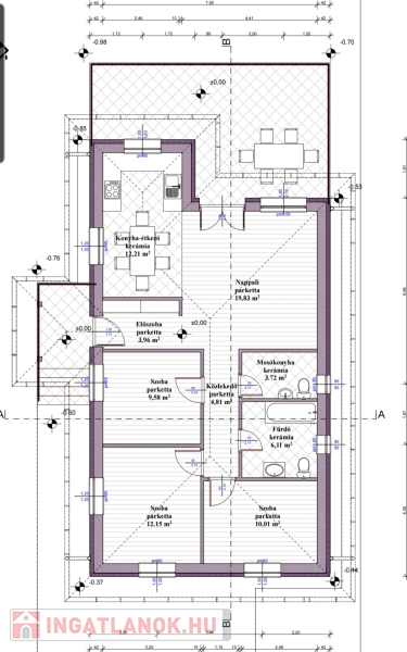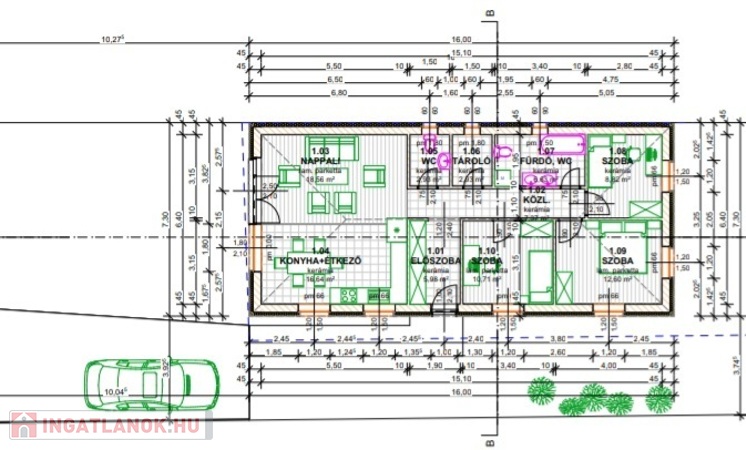 Kiváló adottságú telek előnyeit figyelembe véve alaposan átgondolt tervezés alapján épül az ingatlan benapozottsága optimális.