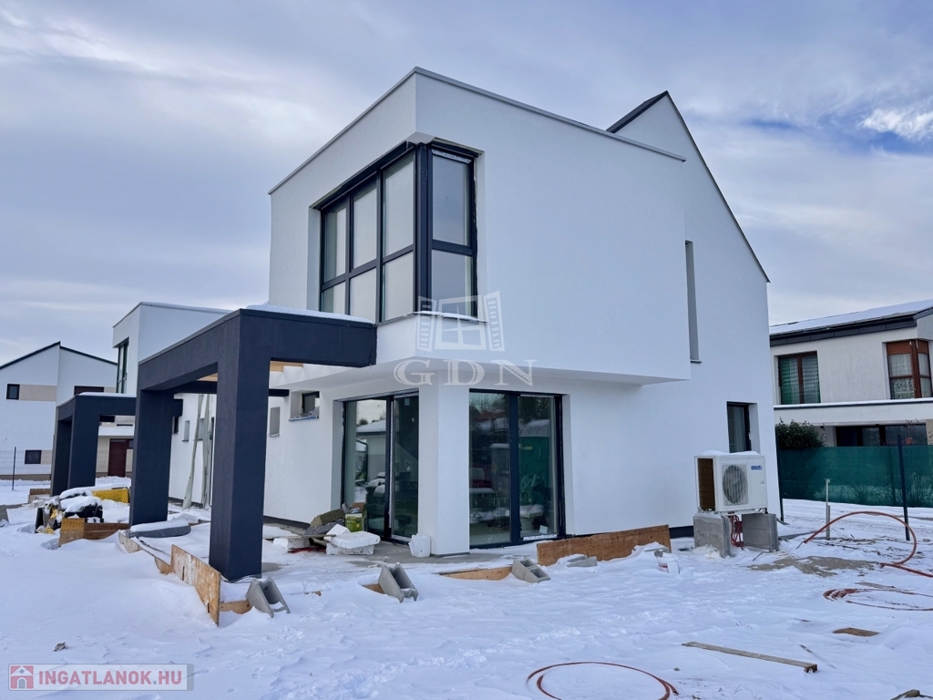DIÓSD Sashegyi részén, új építésű ingatlanok környezetben lévő, kettő db kétszintes, 124,6 m2 -es alapterülettel rendelkező (113,4 m2 hasznos), 3 szoba + nappali + 2 fürdőszobás ikerház, hőszivattyúval, GARÁZZSAL és terasszal készült ÚJ ÉPÍTÉSŰ IKERHÁZAT kínálunk megvételre.