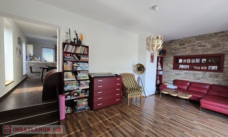 Eladó Diósdon egy belső háromszintes 192 nm-es (150 nm lakótér + 45 nm garázs + 38 nm terasz) rendkívül otthonos családi ház 442 nm-es gondozott kerttel.