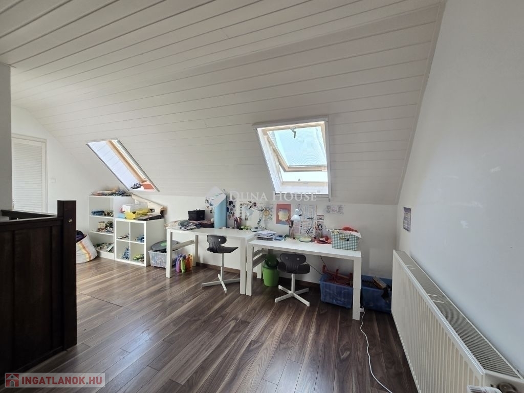 A lakótértől elkülönülve, a garázsszinten, egy ablakos dolgozó szoba van, remek lehetőségként home office-ban történő munkához vagy akár vállalkozásra.