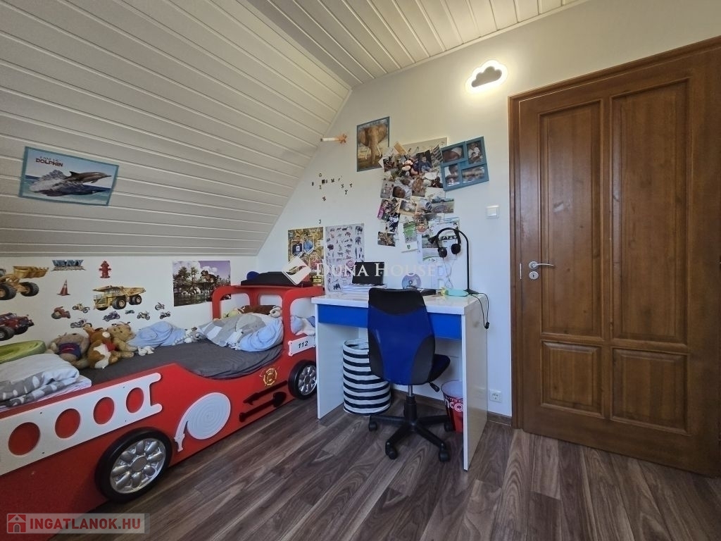 Egyéb extrák: riasztórendszer infra sorompókkal és mozgásérzékelő kamerákkal, két autóbeállásra alkalmas kapu, panorámás kilátás az emeleti szobákból